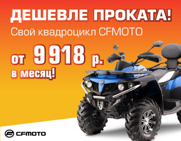 Воспользуйтесь уникальным предложением по беспроцентной рассрочке на квадроцикл - заберите свой квадроцикл CFMOTO в нашем салоне уже сегодня!